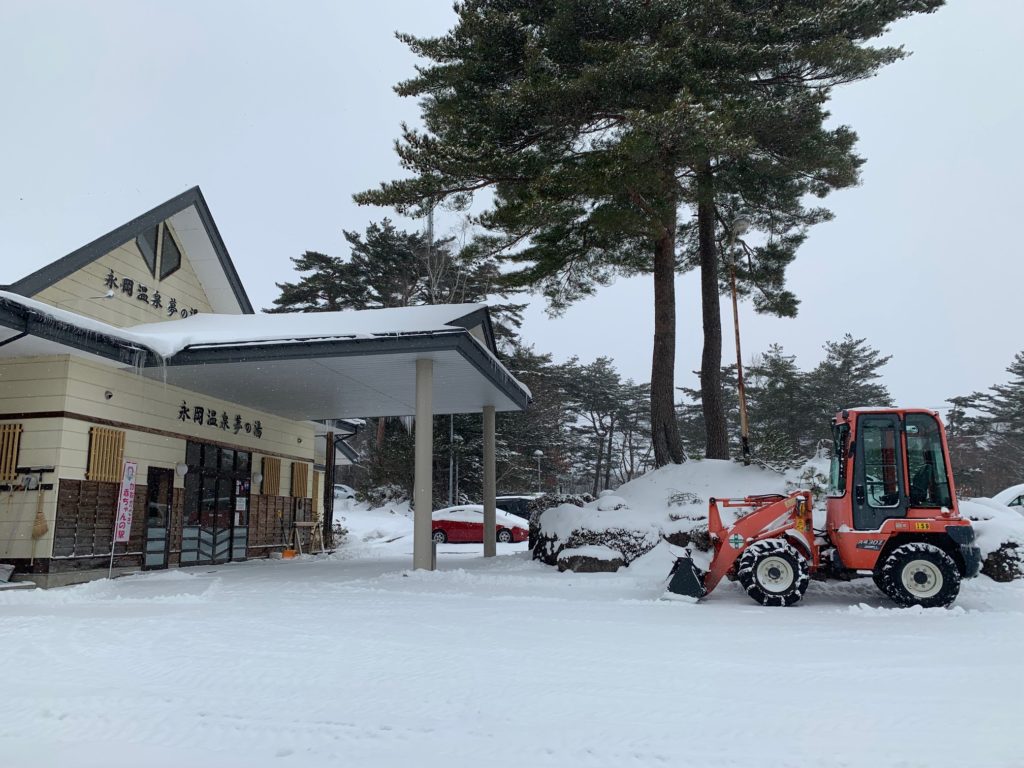宿の雪は10cmほどのパウダースノー、除雪車も出番がない様です。