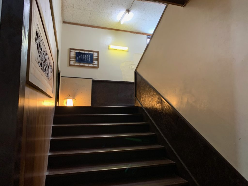 湯治部2階への階段は幅広で角度が浅く、母校の宝塚小学校(もちろん旧校舎ね)を思い出しました。