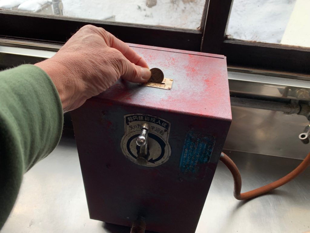 大沢温泉にも同じものがあります。10円でヤカン一杯のお湯が沸き、観察してるとまだあと2分ぐらい作動。時間にして10分位の作動ですごくリーズナブル。