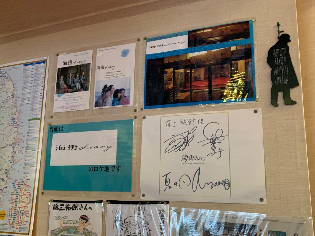 このお宿、映画「海街diary」のロケにも使われた様で、中に入るとロビーの正面に出演女優さん達のサイン色紙が飾られてました(はるかちゃん も すずちゃんも来てたんや・・・)