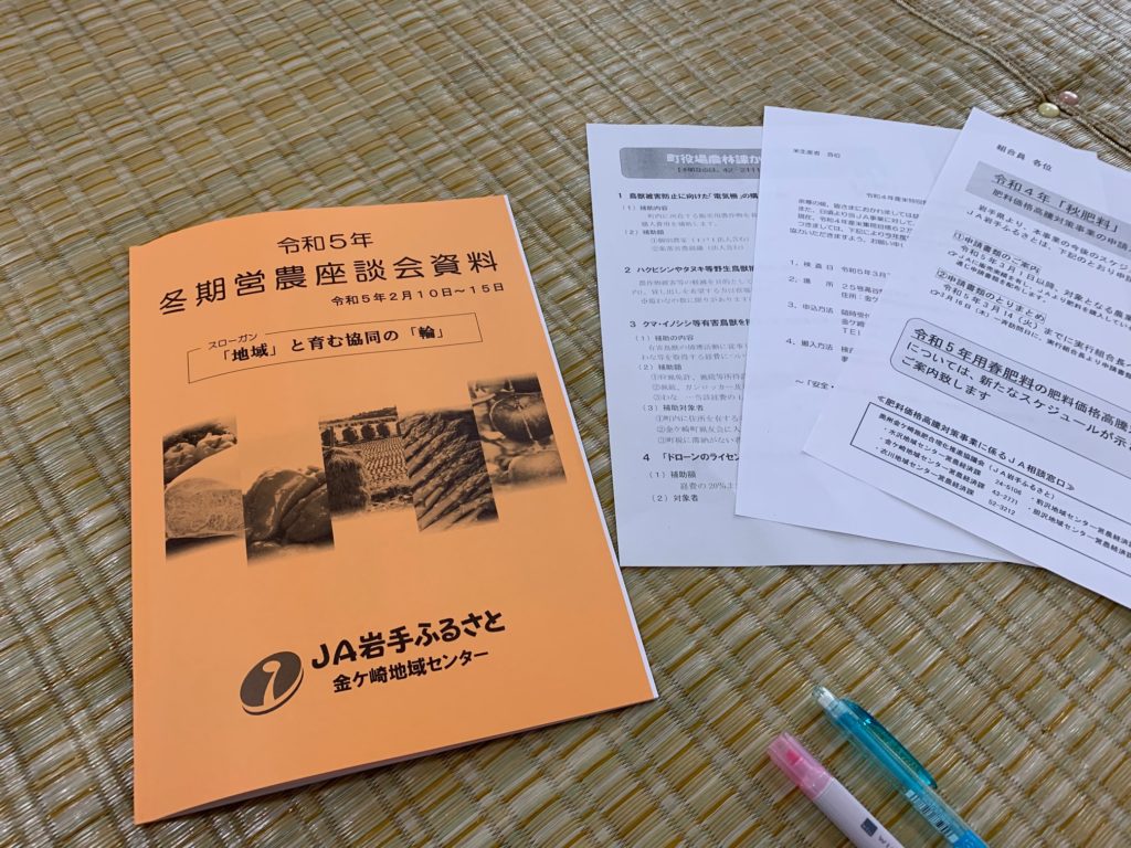 昨今の状況から農業用肥料も例にもれず今年は1.5倍近くの値上がりしてて、昨年比値上がり分の8割程度を補助していただけるとの説明と手続き方法の説明もありました。家畜用の飼料も大幅な値上がりで経営が成り立たなくなってるニュースを見ますが、そちらも補助が整備されてるのだろうか?と気になりました。