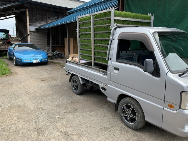 軽トラックに積んで圃場まで向かいます