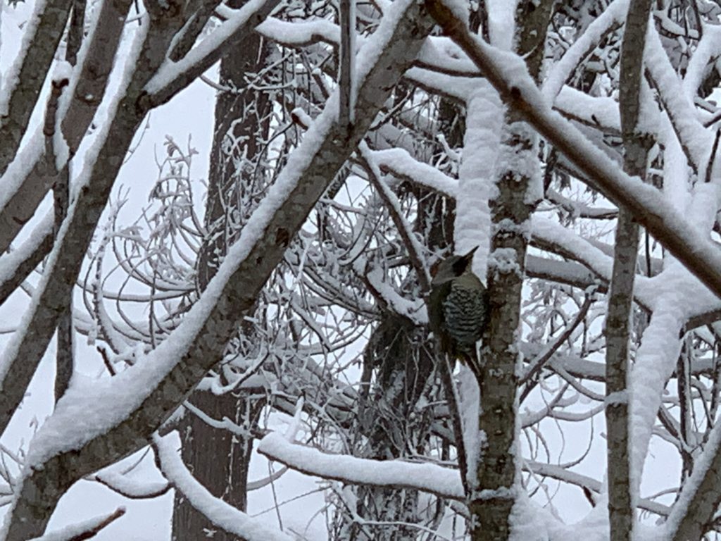 部屋の窓のの正面の木で休んでる「アオゲラ」