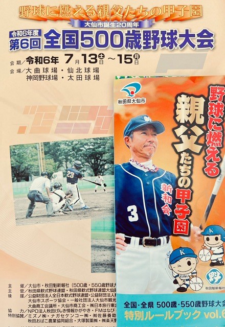 秋田県大仙市が発祥の500歳野球、満50歳以上のプレーヤーが参加。プレーグランドに立っている9名の年齢合計が常に500歳以下と言う独特なルールの高年齢軟式野球大会です
