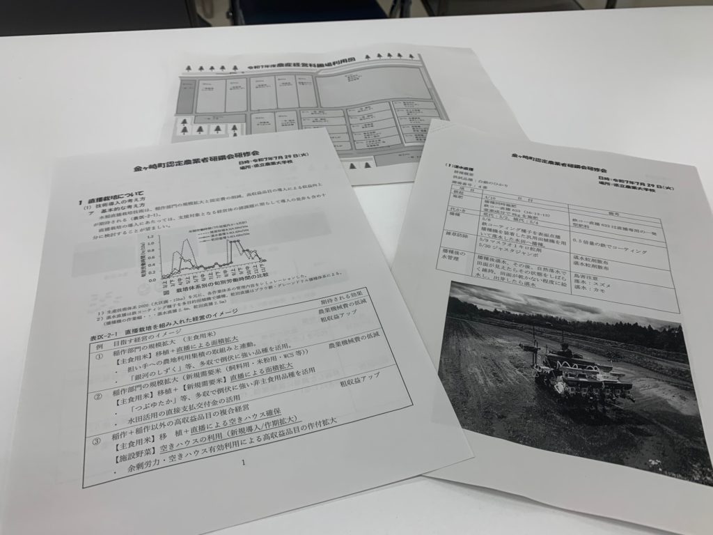 今年は地元の農業大学校で稲作の直播栽培技術についてをご教授いただきました