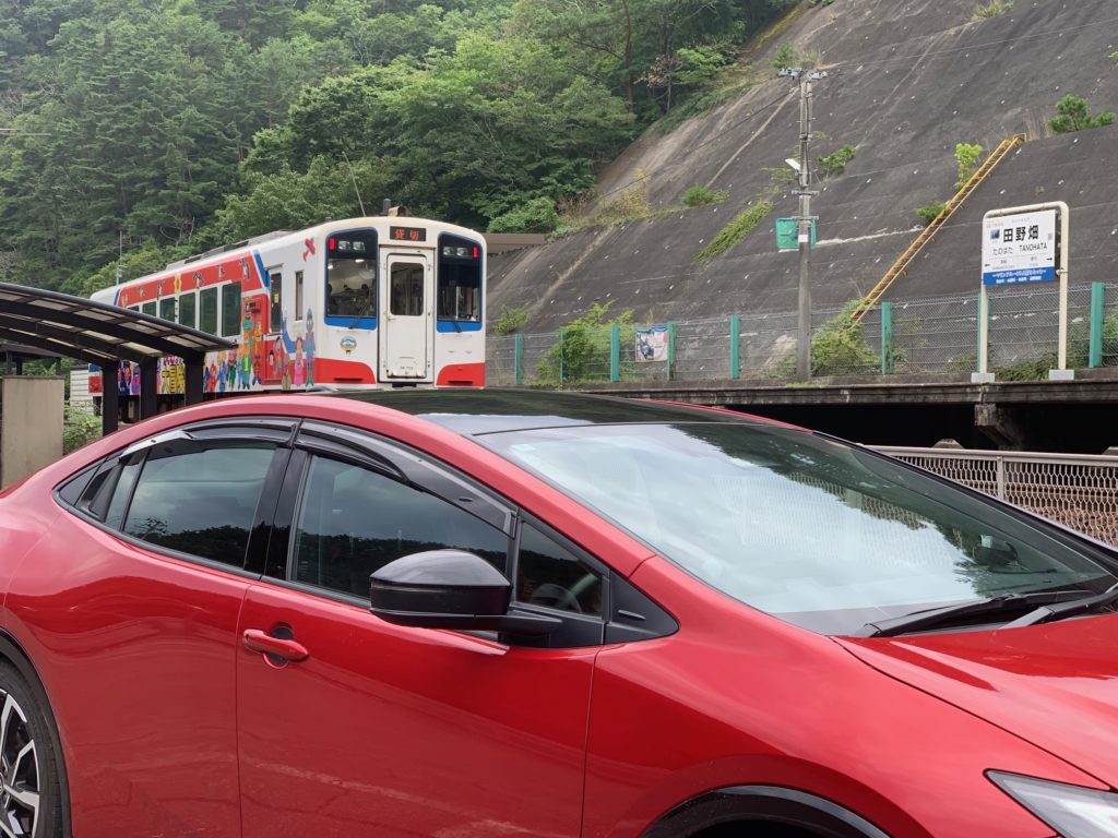 チェックイン前に通り掛かった田野畑駅であまちゃん列車と記念撮影