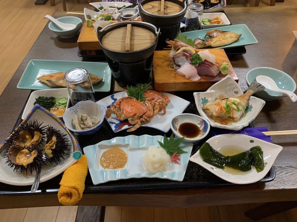 せっかくの遠征なので宿泊する事にし、岩泉町は松茸が有名ですがまだその時期ではないので、田野畑村のお宿「ひらいが海荘」で海の幸を堪能する事にしました