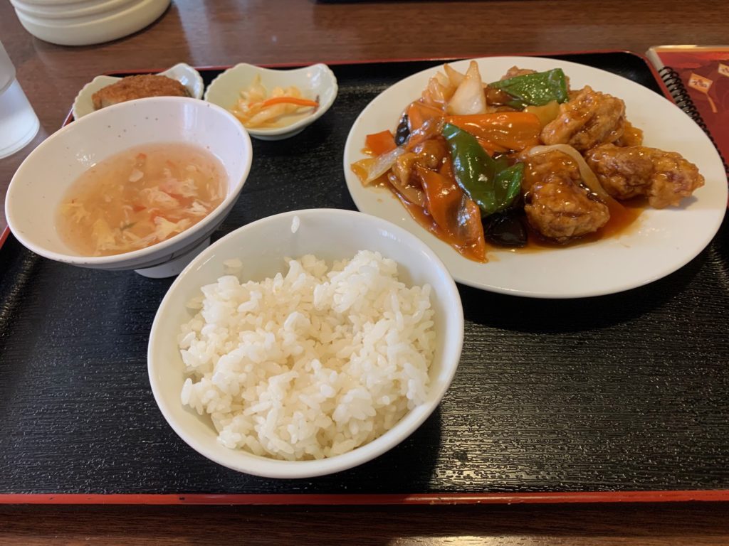 今日はランチで伺い、酢豚定食を注文したのだが、驚きが二つありました。まず一つ目は運ばれてきた定食のご飯の量がそれまでの結構な量の丼メシから小さい茶碗に変更されていた点(常連とおぼしき若い男性は「ご飯大盛で」と注文していた)、一口食べて「これは古米以上に古い古米臭が漂ってるな」と直感、、ちょっとショックでした