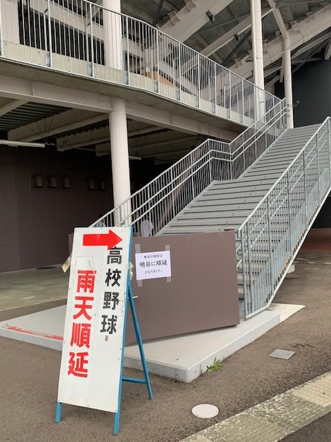 決勝戦は花巻東 vs 八戸光星、昼前頃から雨の予報の為に試合開始が9:00に早まったので、きたぎんボールパークに(屋根下席の確保を兼ねて)早朝から来てみましたが、、、
