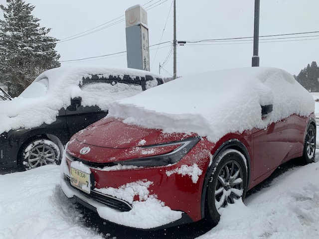 で、チェックアウト時にはトヨタのスポーツカーに15cm程の積雪でした、町内でもさすがに山麓ですね