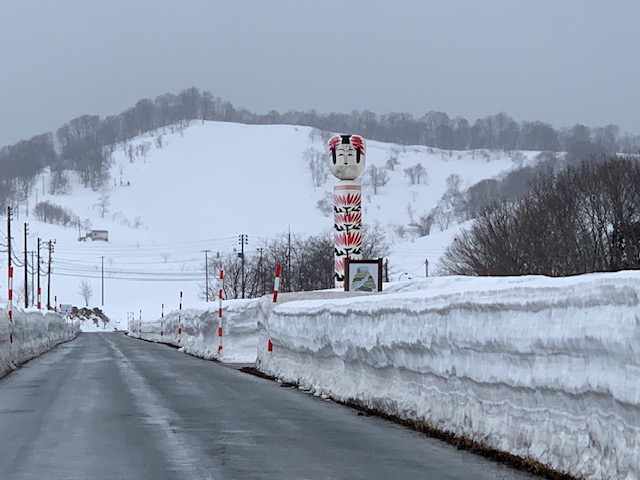 先週の暖かさで道路に雪はないもの路肩は背に高さ以上の雪の壁です