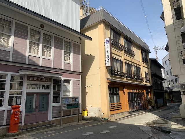 昭和初期建造の旧郵便局舎と隣り合わせの大穀屋さん
