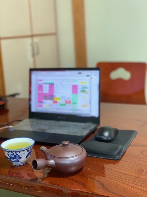 湯治中は部屋で今年の稲作の育苗から田植えまでの予定表を作成したり、農薬の選定と発注タイミングの計画を立てるのワーケーションを行います