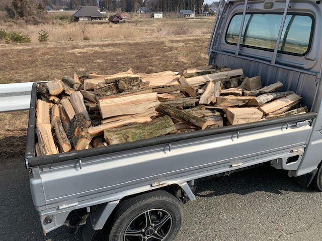 隣町の知り合いの方が今季の伐採を始めたらしく、楢(ナラ)の木が出たよとの連絡があり、譲っていただきました。少し割高ですが貴重なナラ、しかも割りまでやってくれてるので、すごく助かりますm(__)m