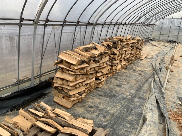 楢の薪は割ってから良好な乾燥まで通常2年程かかりますが、ビニールハウスだとこの冬(来期)から使えるかも?!