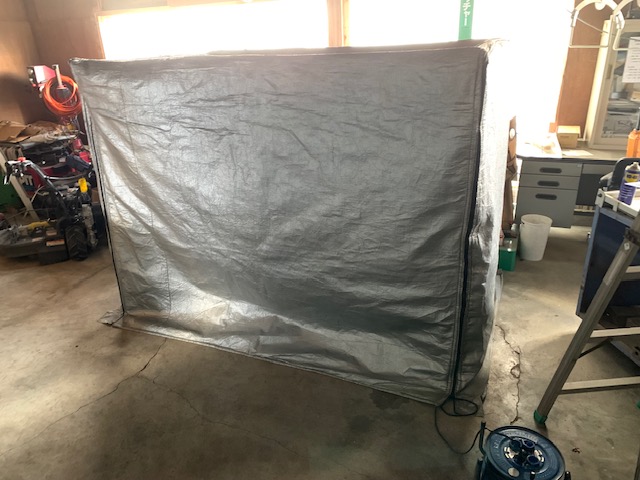 「苗半作」の最初の大事な種子消毒~浸種の工程です。発芽率を揃えるための理想水温(水温は12℃~13℃)を保つために、気温が下がる夜間にヒーターで保温するための自作の室(ムロ)を準備してます
