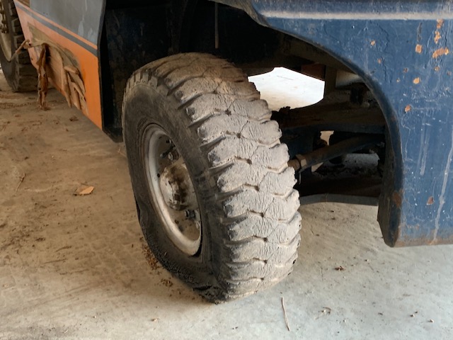 2号機はもう何十年前のフォークリフトだろうか、、、珍しい重ステ(非パワーステアリング)で取り回しが大変な代物です💦